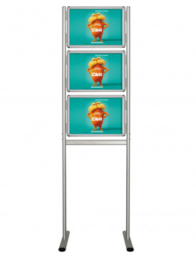 A3 (x3) ; Aluminium.Porte-affiche sur pied totalement modulable.