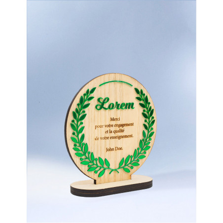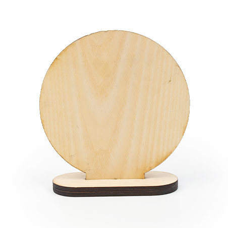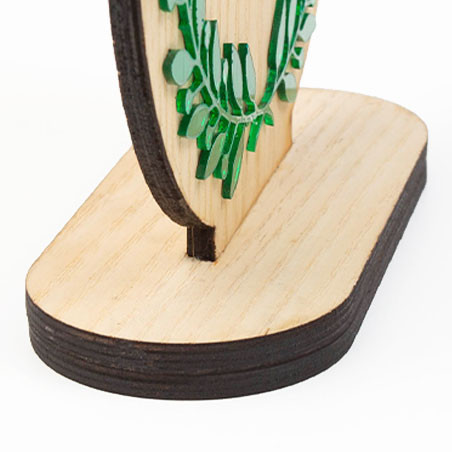 Finition : Découpe laser du plexi miroir monté sur du socle le bois.