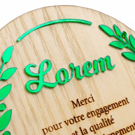 Matières : Bois 5 mm ; Plexi miroir en couleur 2 mm