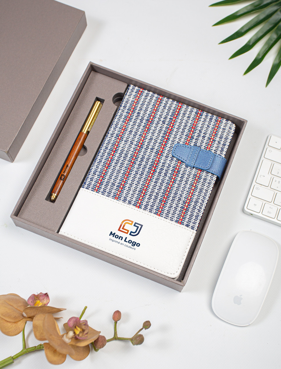 Le Coffret Carnet Tissé & Stylo est un cadeau d’affaires à la fois moderne et sophistiqué.