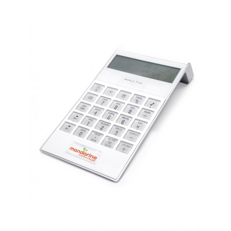 Alliance de blanc et cristal, relevé par un gris métal, cette belle calculatrice trouve assurément sa place sur un bureau.