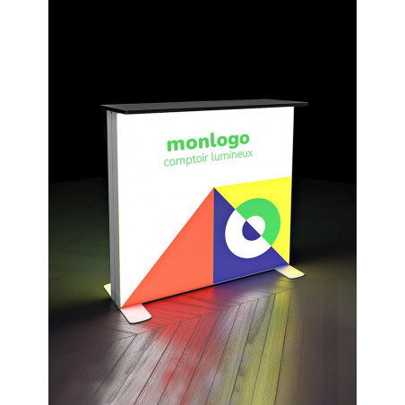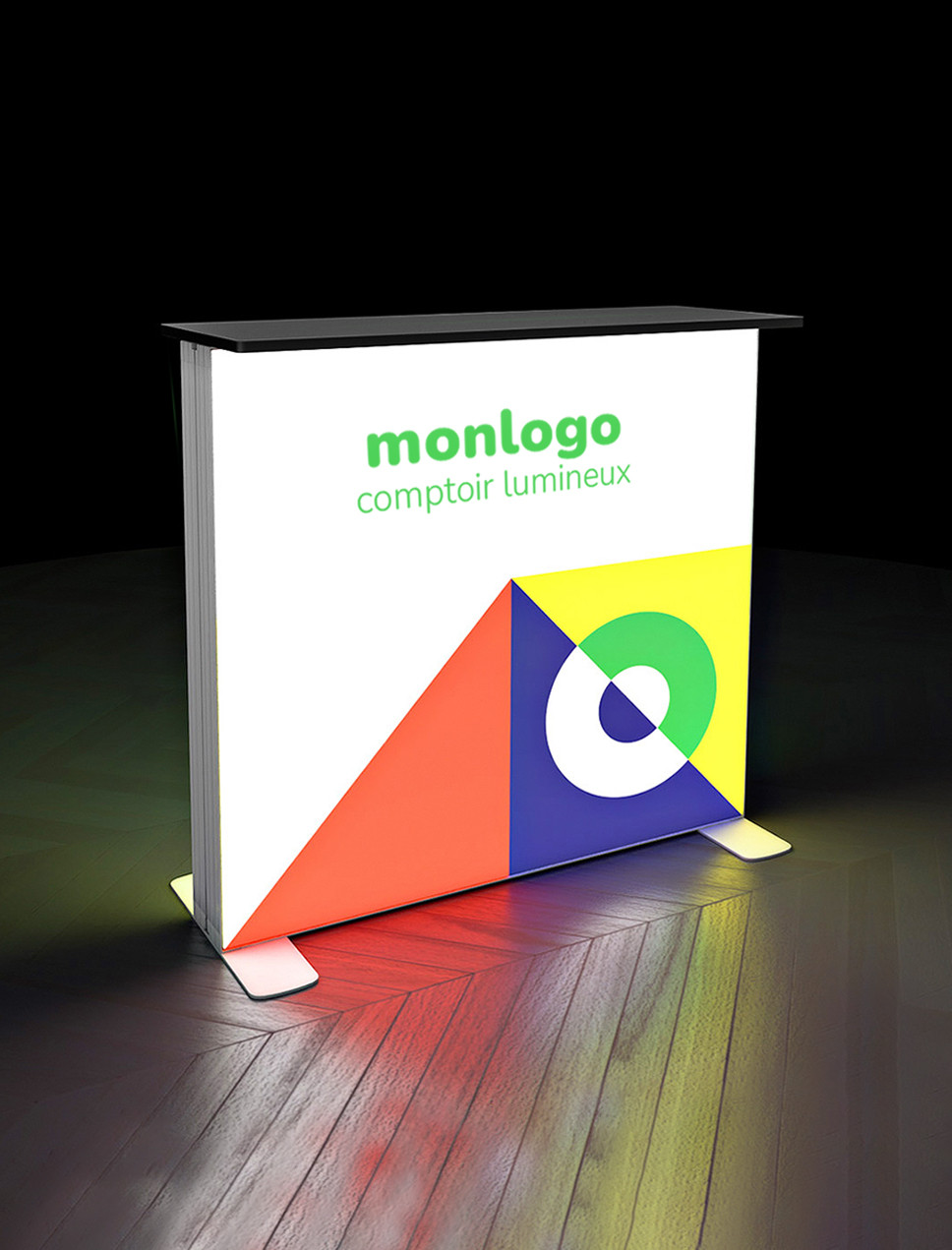 Transformez votre comptoir en un véritable point de lumière. Grâce à son éclairage LED intégré et son tissu backlight, il offre à vos espaces un rendu haut de gamme et homogène.