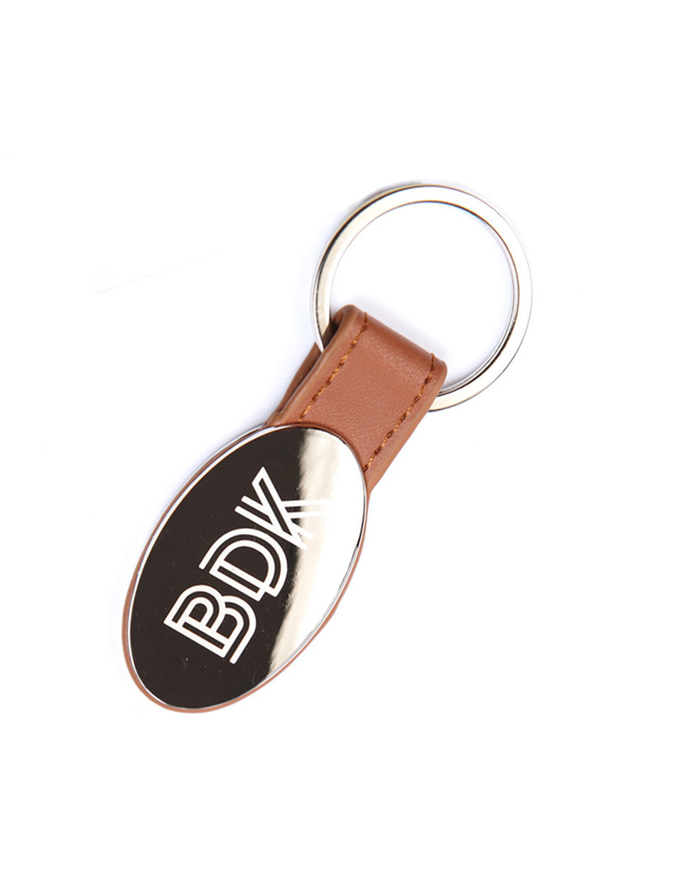 Misez sur la prestigieuse gamme des porte-clés en métal : cet objet de communication élégant qui associe le simili-cuir et le métal argenté.