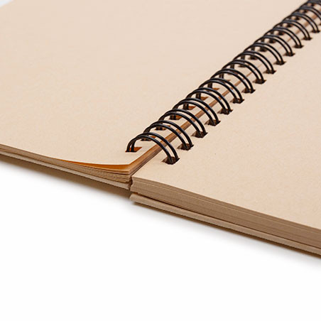 Il est intéressant, ce bloc note écologique, avec sa couverture épaisse en carton recyclé, ses feuilles intérieures natures et ses grosses spirales métalliques...
