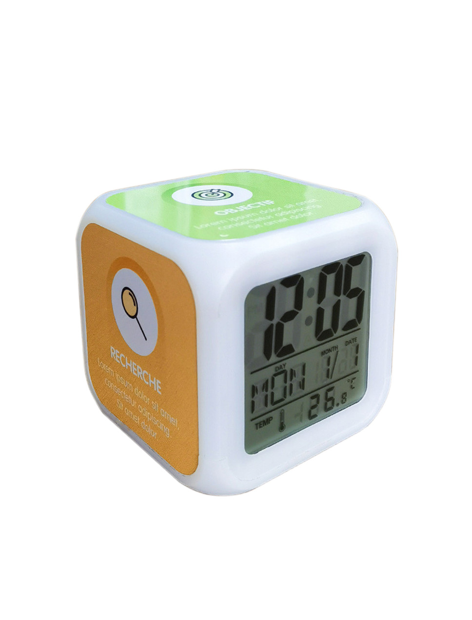Posé sur une table de chevet, ce réveil personnalisé à vos couleurs assurera votre visibilité tous les jours. C’est un cadeau qui ravira vos clients et collaborateurs de tout âge.