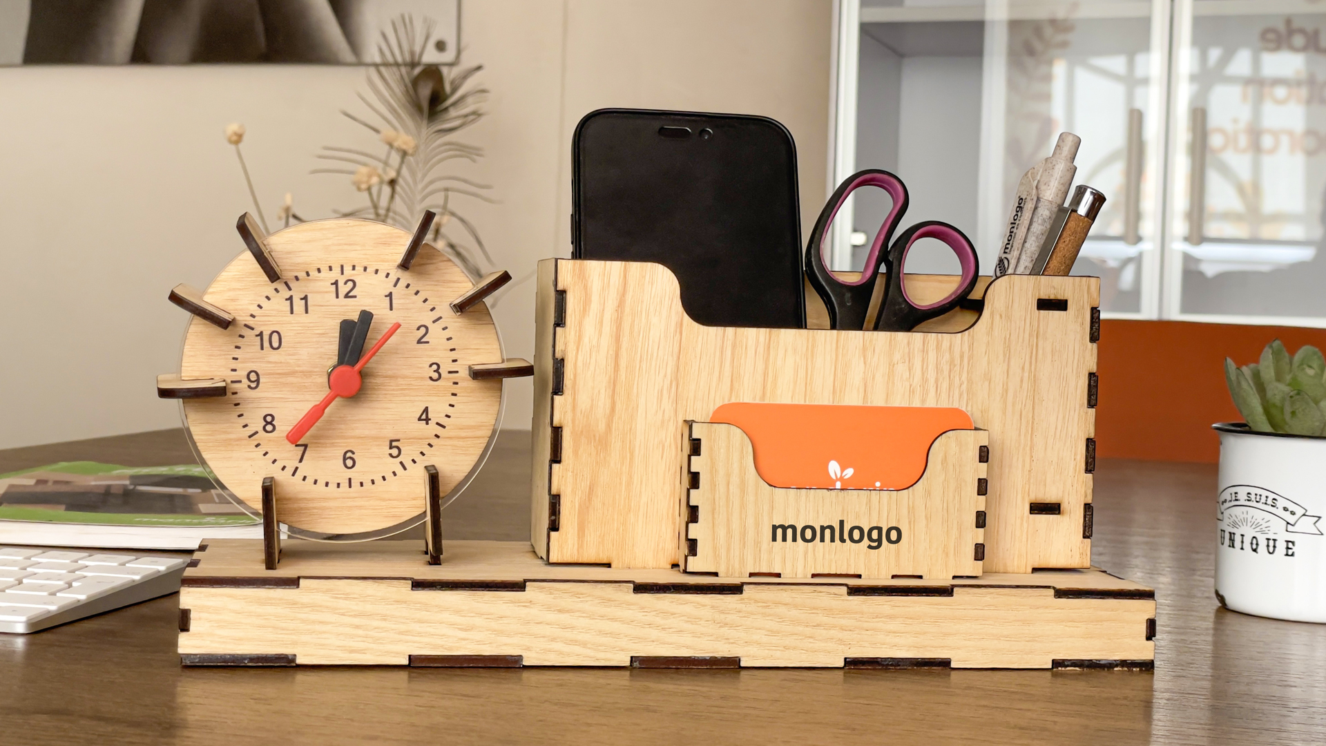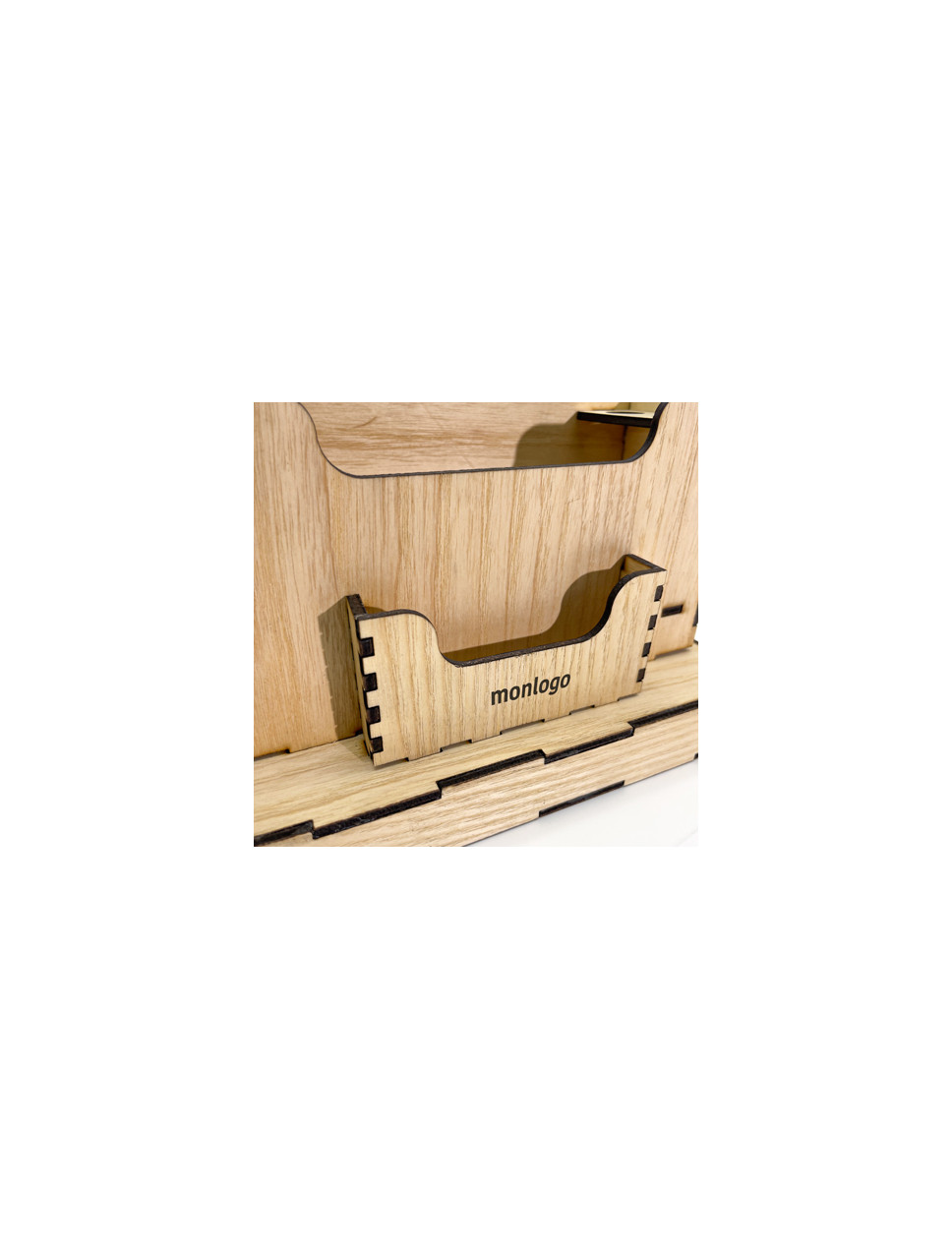 Ce support multifonction est personnalisable et allie esthétisme et praticité. Il apporte une touche naturelle et ordonnée à votre espace de travail tout en optimisant votre organisation quotidienne.