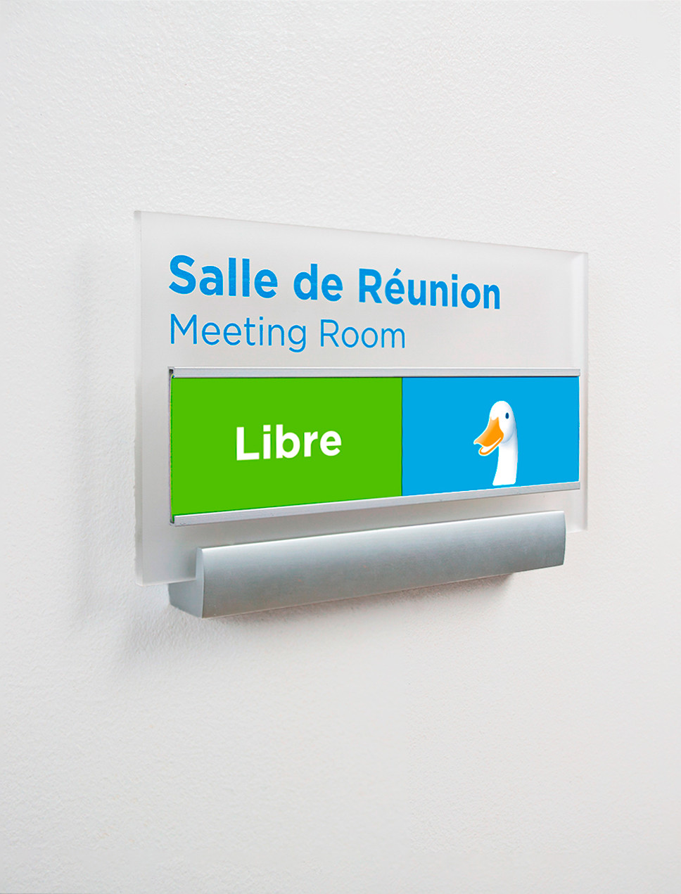 Apportez une touche de professionnalisme, une dimension informative et de la personnalisation à vos salles de réunion en optant pour nos plaques. Pour une gestion plus efficace de vos salles de réunion, vous avez la possibilité d’ajouter des indicateurs de disponibilité notamment avec notre gamme coulissante.