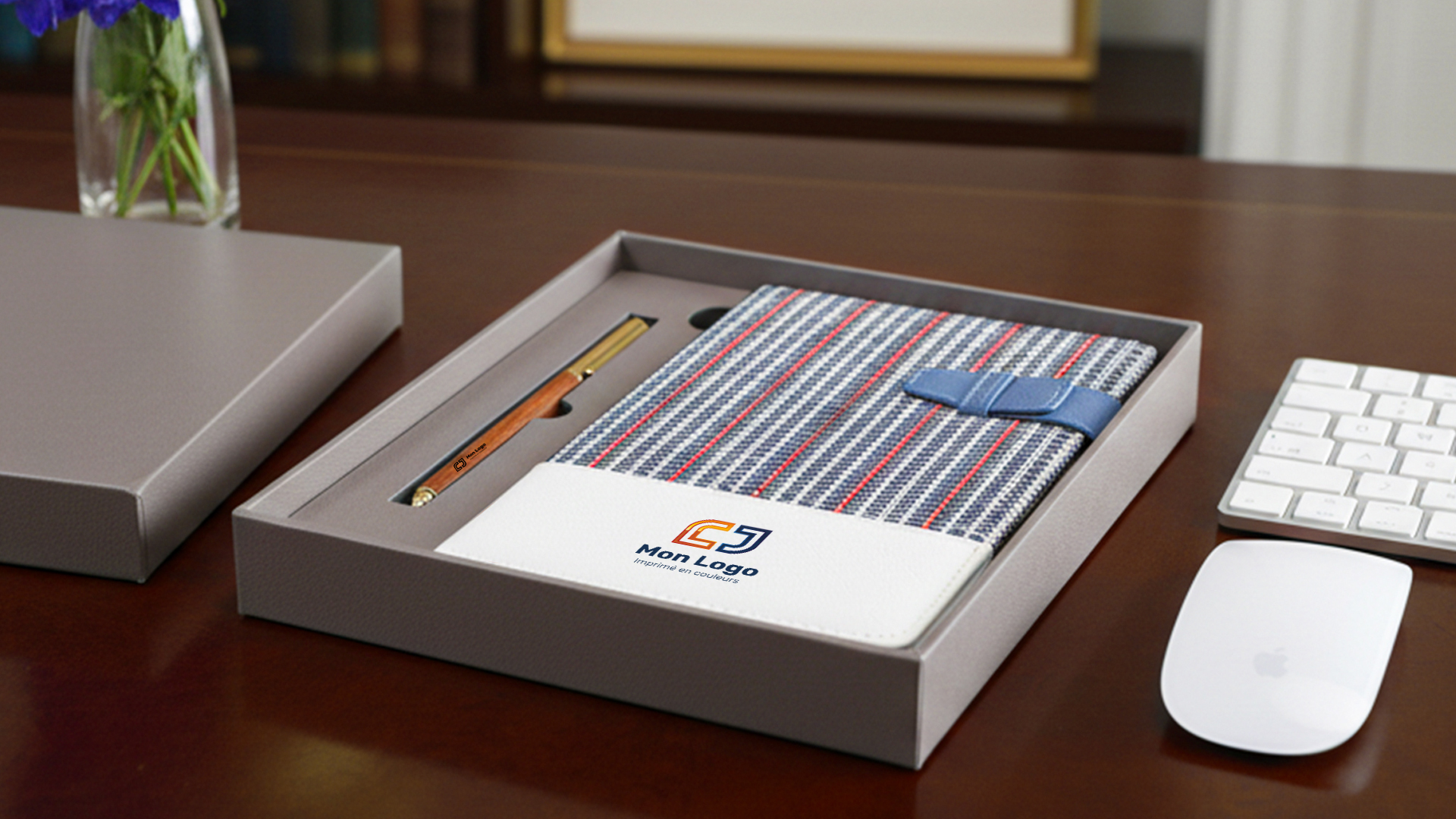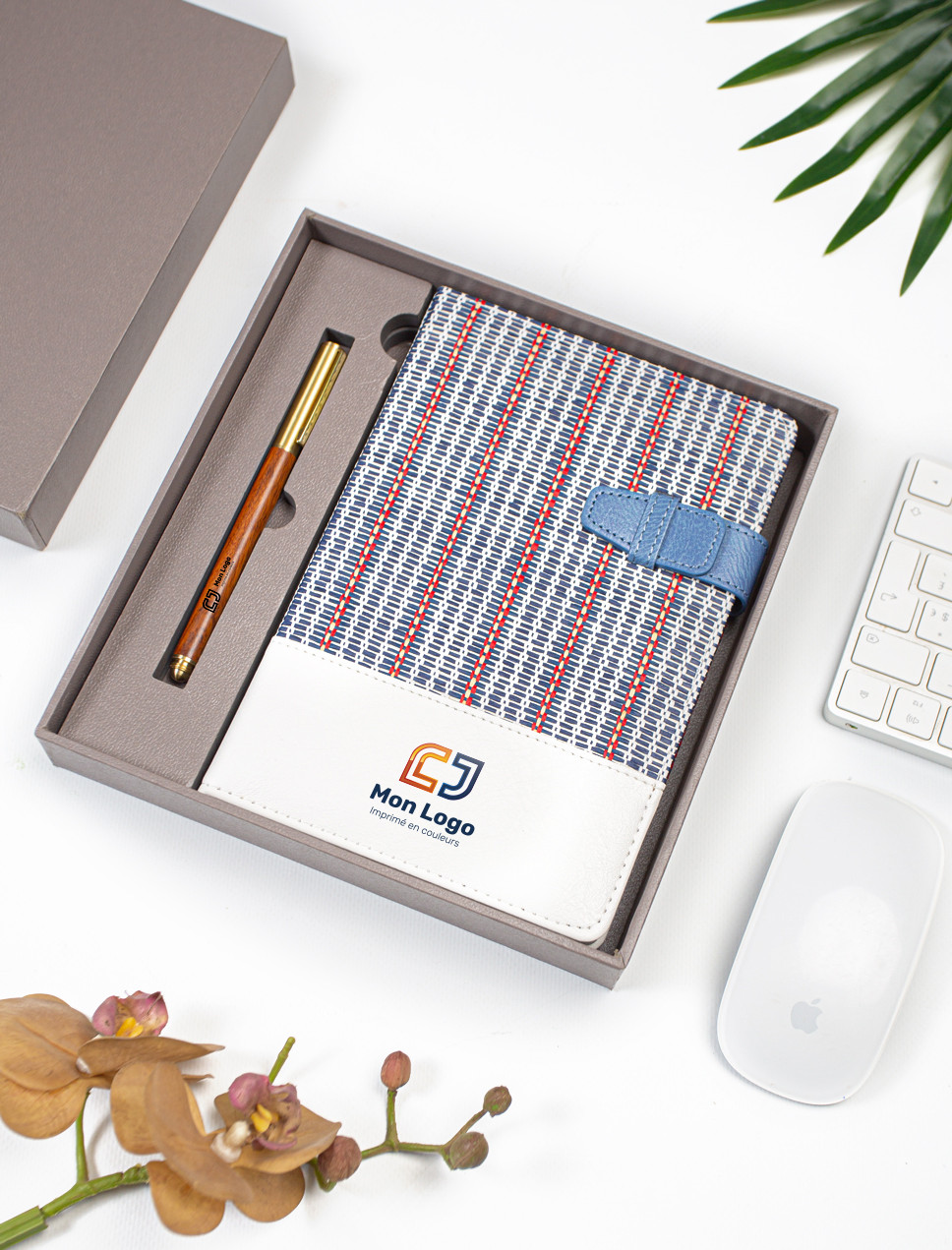 Le Coffret Carnet Tissé & Stylo est un cadeau d’affaires à la fois moderne et sophistiqué.