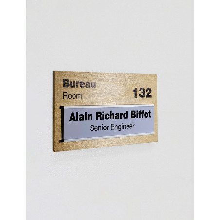 Conçues pour allier praticité et esthétique, nos plaques avec affichettes offrent une solution flexible pour une mise à jour rapide et élégante de vos informations. Changez vos informations en un clin d'œil en remplaçant simplement l'affichette, offrant ainsi une adaptabilité instantanée à votre signalétique.
