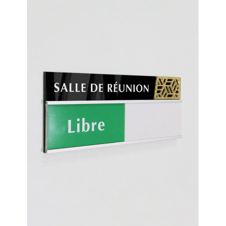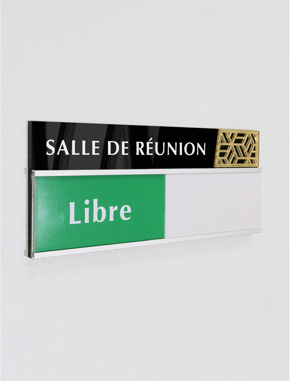 Apportez une touche de professionnalisme, une dimension informative et de la personnalisation à vos salles de réunion en optant pour nos plaques. Pour une gestion plus efficace de vos salles de réunion, vous avez la possibilité d’ajouter des indicateurs de disponibilité notamment avec notre gamme coulissante.