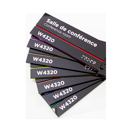 Conçues pour allier praticité et esthétique, nos plaques avec affichettes offrent une solution flexible pour une mise à jour rapide et élégante de vos informations. Changez vos informations en un clin d'œil en remplaçant simplement l'affichette, offrant ainsi une adaptabilité instantanée à votre signalétique.