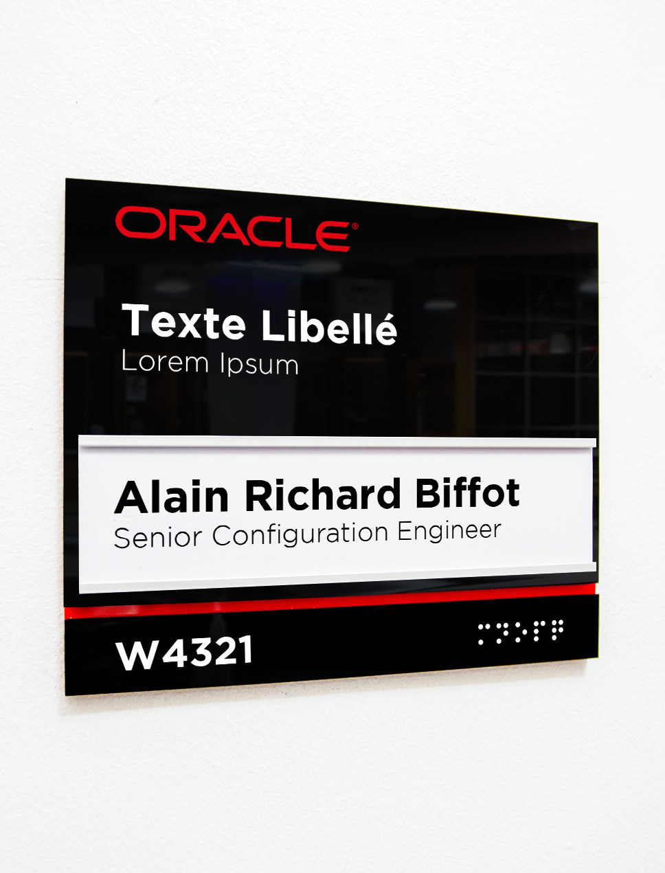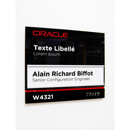 Conçues pour allier praticité et esthétique, nos plaques avec affichettes offrent une solution flexible pour une mise à jour rapide et élégante de vos informations. Changez vos informations en un clin d'œil en remplaçant simplement l'affichette, offrant ainsi une adaptabilité instantanée à votre signalétique.