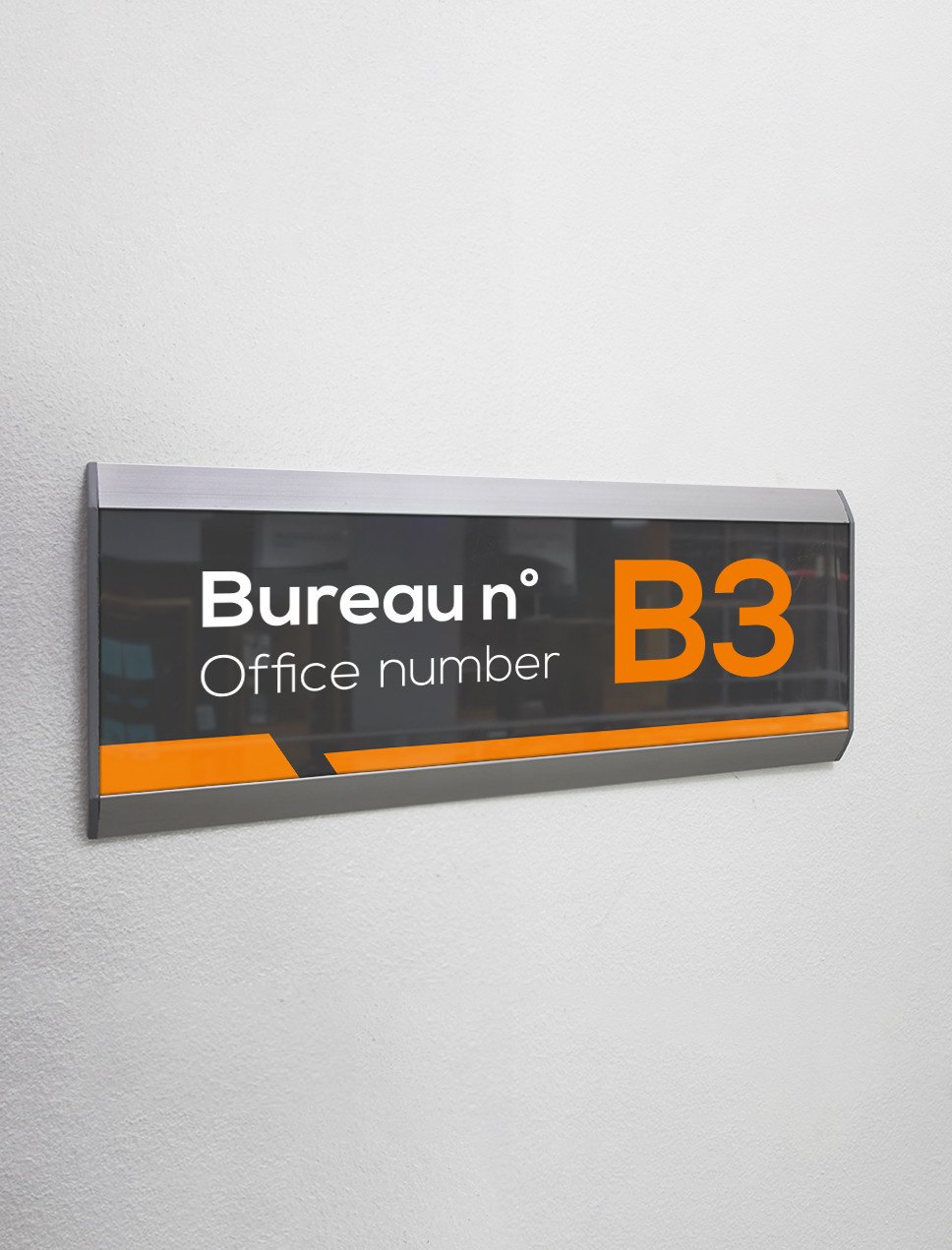 Protégée par une élégante plaque en PVC transparent, l'affichette en papier se remplace aisément.