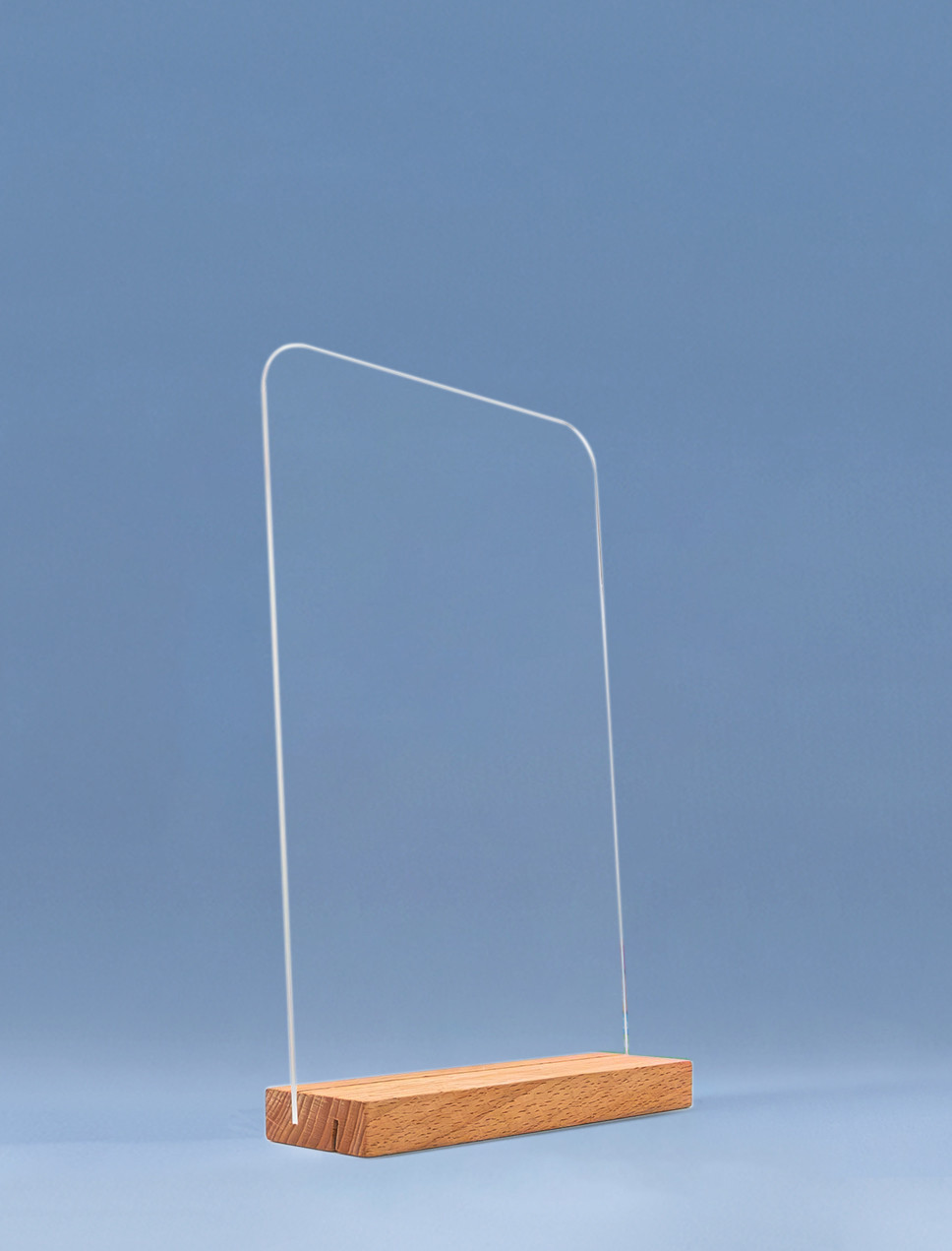 Notre présentoir de table est fabriqué en bois artisanal avec un espace élégant qui accueille des plaques plexi de 2mm assurant ainsi une présentation optimale de votre contenu.