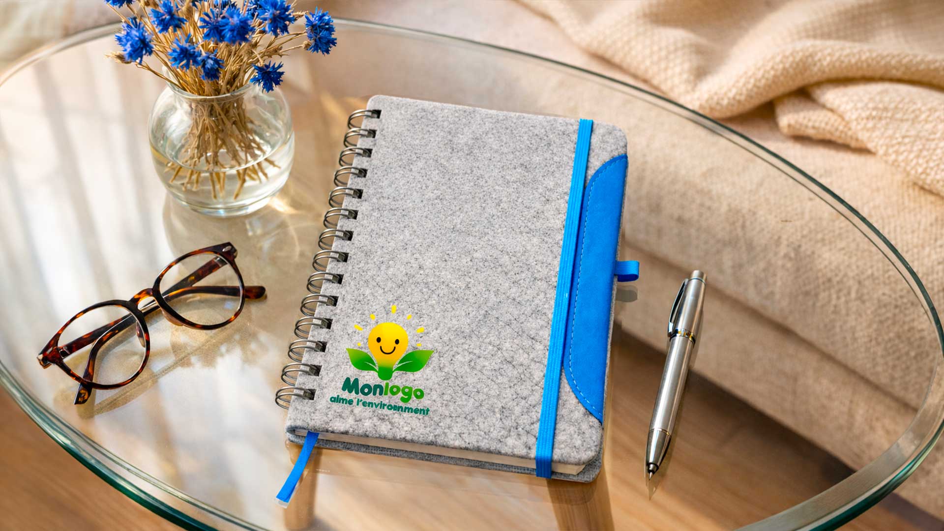 Si vous voulez personnaliser vos agendas afin qu’ils reflètent de A à Z l’image de votre marque, nos M’notes sont un choix judicieux. Ils peuvent être confectionnés dans toutes les matières que vous souhaitez (liège, tissu coton, cuir, etc.) avec différents types de marquage possibles (sérigraphie, doming, gaufrage, embossage, etc.). A noter que la conception de ces produits hors pairs dure quatre mois.