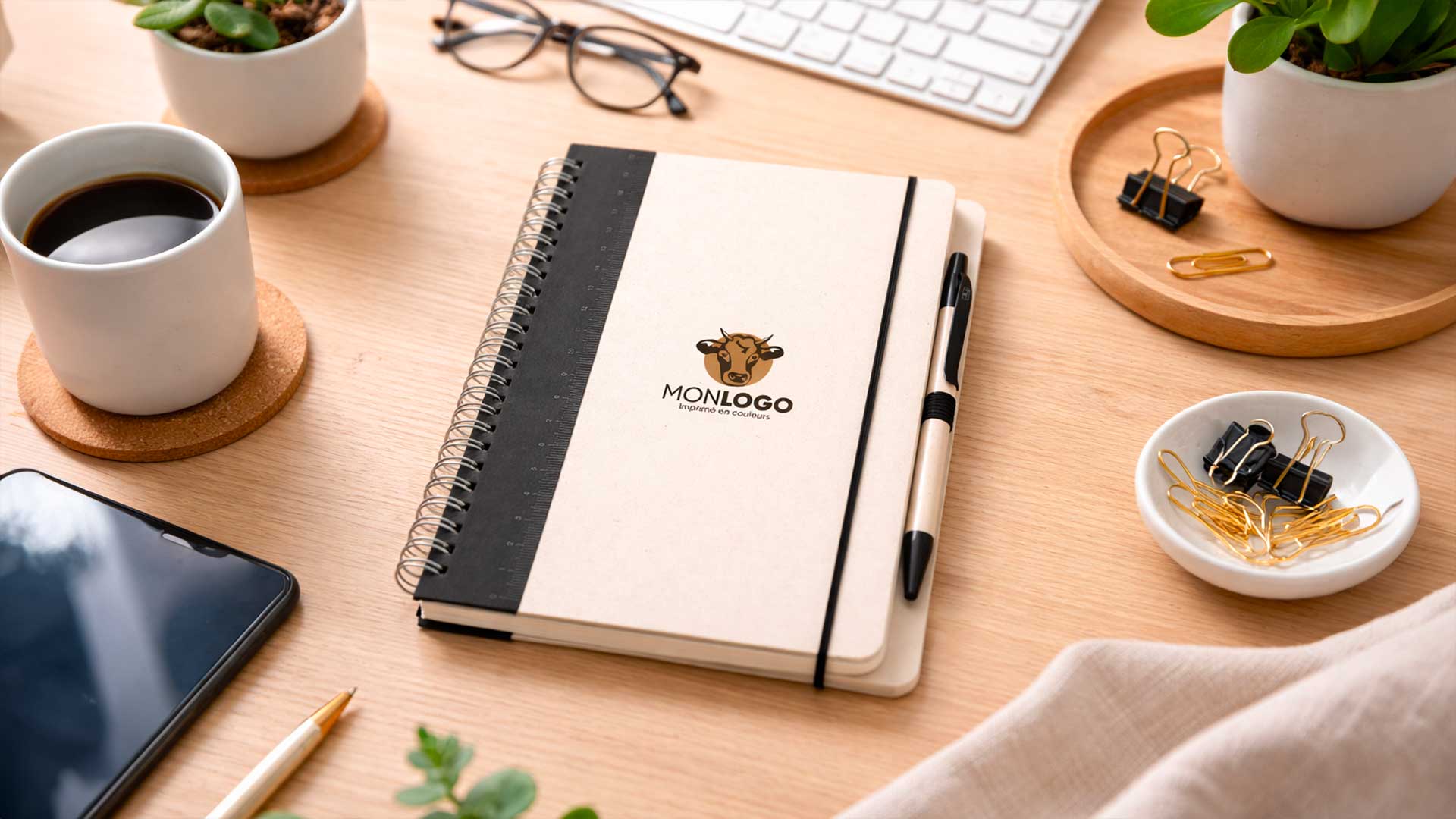 Si vous voulez personnaliser vos agendas afin qu’ils reflètent de A à Z l’image de votre marque, nos M’notes sont un choix judicieux. Ils peuvent être confectionnés dans toutes les matières que vous souhaitez (liège, tissu coton, cuir, etc.) avec différents types de marquage possibles (sérigraphie, doming, gaufrage, embossage, etc.). A noter que la conception de ces produits hors pairs dure quatre mois.