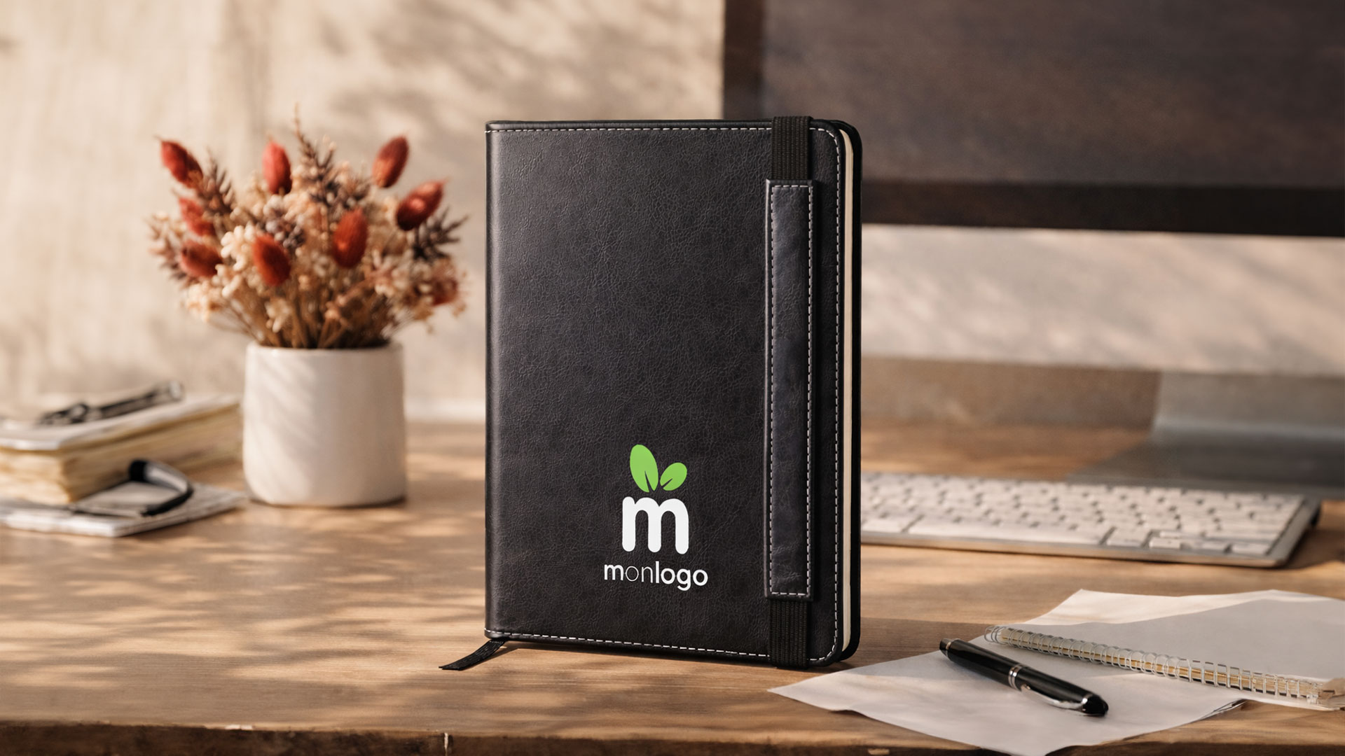 Si vous voulez personnaliser vos agendas afin qu’ils reflètent de A à Z l’image de votre marque, nos M’notes sont un choix judicieux. Ils peuvent être confectionnés dans toutes les matières que vous souhaitez (liège, tissu coton, cuir, etc.) avec différents types de marquage possibles (sérigraphie, doming, gaufrage, embossage, etc.). A noter que la conception de ces produits hors pairs dure quatre mois.
