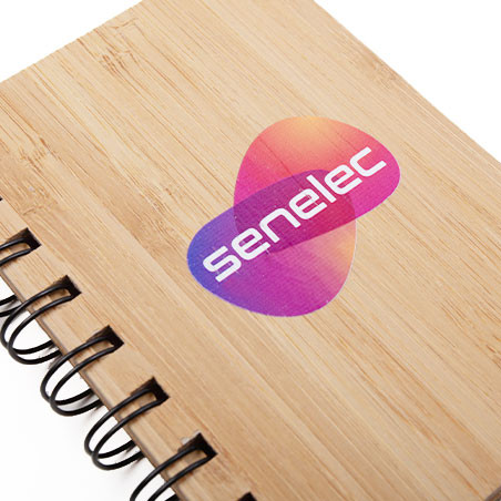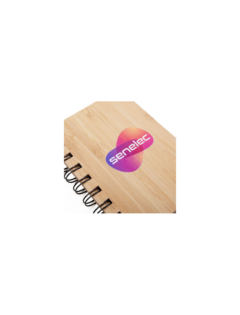 Écrivez responsable. Offrez durable. Marquez les esprits. Alliez image de marque et engagement environnemental avec ce carnet à couverture en bambou naturel.