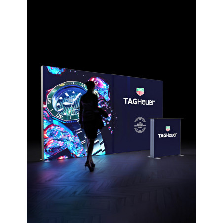 Transformez vos structures d’exposition en véritables écrans lumineux. Grâce à son éclairage LED intégré, vos stands ont un rendu premium et s’adaptent à toutes les configurations d’espace.