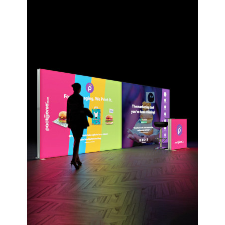 Transformez vos structures d’exposition en véritables écrans lumineux. Grâce à son éclairage LED intégré, vos stands ont un rendu premium et s’adaptent à toutes les configurations d’espace.