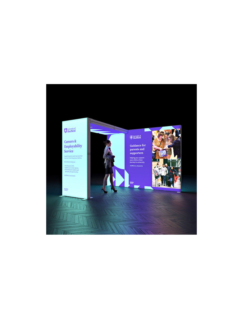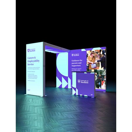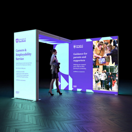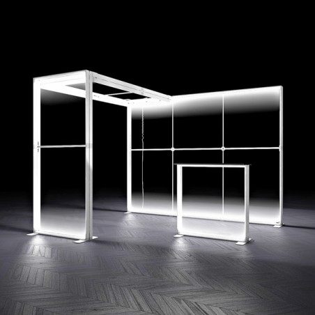 Transformez vos murs d’exposition en véritables écrans lumineux. Grâce à son éclairage LED intégré, vos stands ont un rendu premium et s’adaptent à toutes les configurations d’espace.