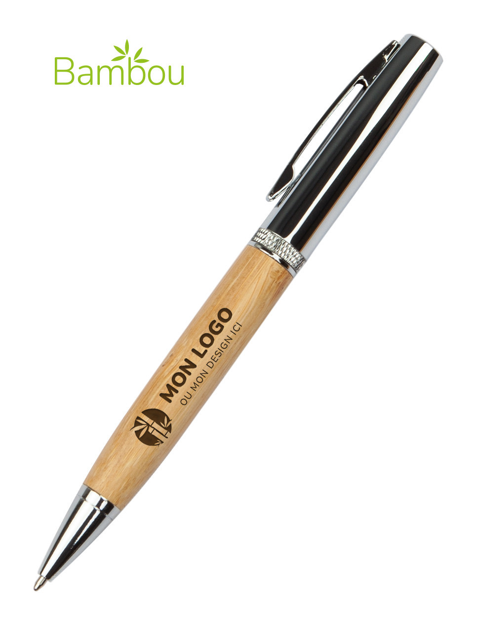 Très beau cadeau personnalisé fabriqué en combinaison de bambou et de métal, afin d’encourager l’utilisation de matières premières naturelles et de réduire les émissions polluantes.