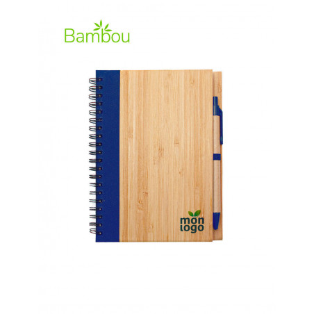 La couverture en bambou, gravée ou imprimée, séduit par son esprit nature. La finition du stylo est un clin d’œil à la bande latéral gauche.